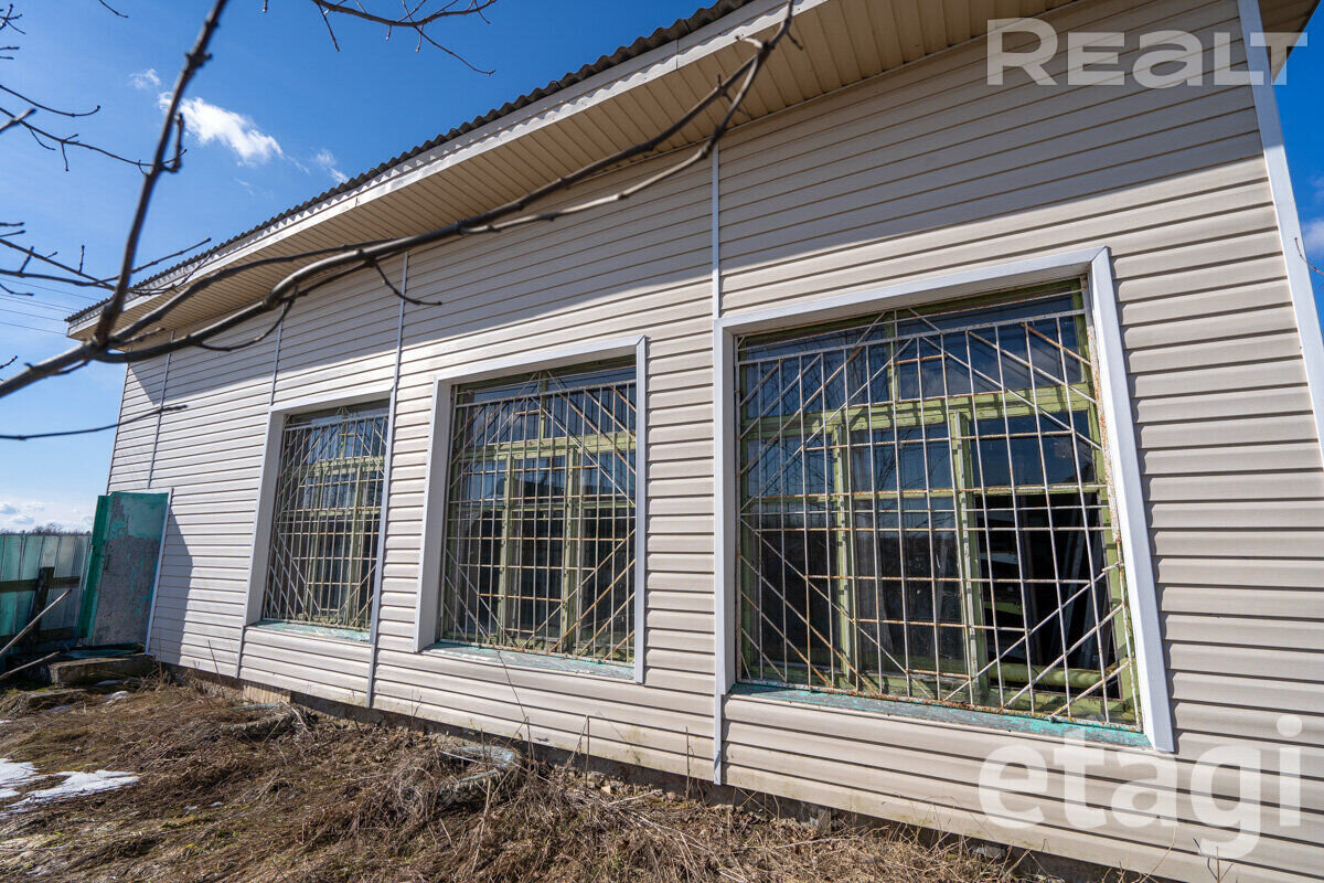 Одноэтажное, кирпичное здание, облицованное сайдингом. Несколько лет назад была полностью заменена крыша. Пол бетонный, положена плитка. Окна деревянные. Высота потолков 3,5 метра. Отопление от собственной котельной. Канализация местная. Электроснабжение есть.