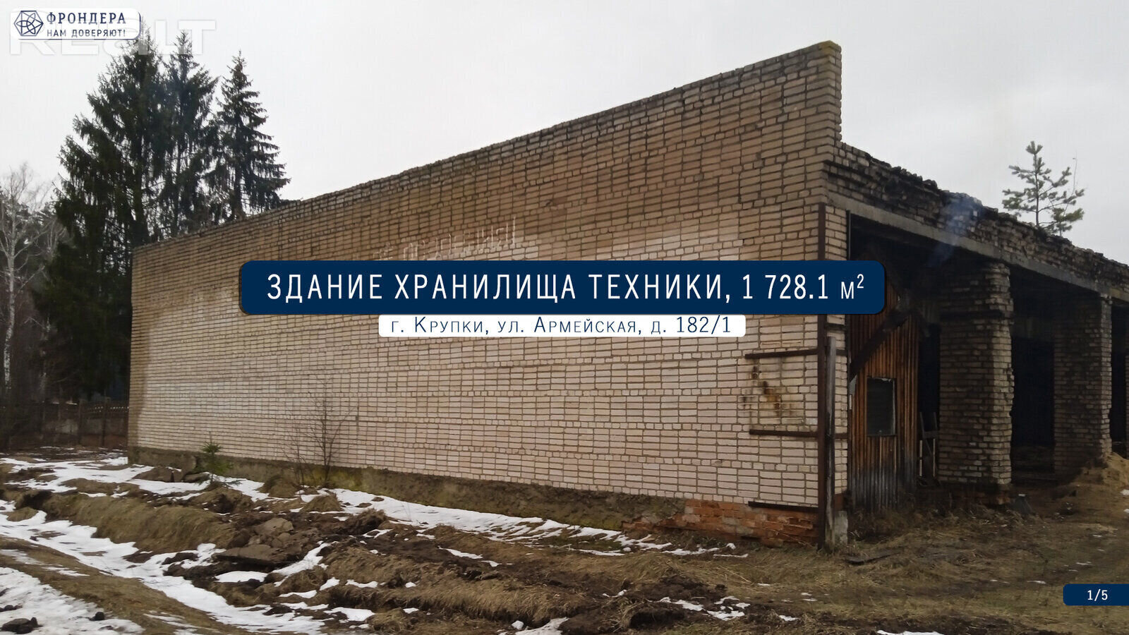 Организатор торгов «Фрондера» предлагает здание хранилища техники, площадью 1 728.1 м², в 1.5 км от Р19 (Толочин – Крупки) в г. Крупки-2. В здании преобладают – железобетонный фундамент, кирпичные стены и перегородки, перекрытия из железобетонных плит, кровля из рулонных кровельных материалов. Земельный участок, площадью 6.4393 га, находится в праве аренды (доля в праве 1/1) для обслуживания зданий и сооружений производственной базы. Поблизости размещаются производственно-складские объекты, жилой сектор, в 740 м – остановка общественного транспорта, в 3.7 км – машиностроительный завод «Амкодор-Можа», 4 км – железнодорожная станция «Новая жизнь», 5 км – АЗС. В состав лота также включены три разрушенных здания – хранилище техники №2 и №3, сенохранилище. Аукцион состоится 29.12.2023 в 12:00, по адресу: г. Минск, ул. Мележа 1, оф.1127. Окончание приема заявлений 28.12.2023 в 16:00