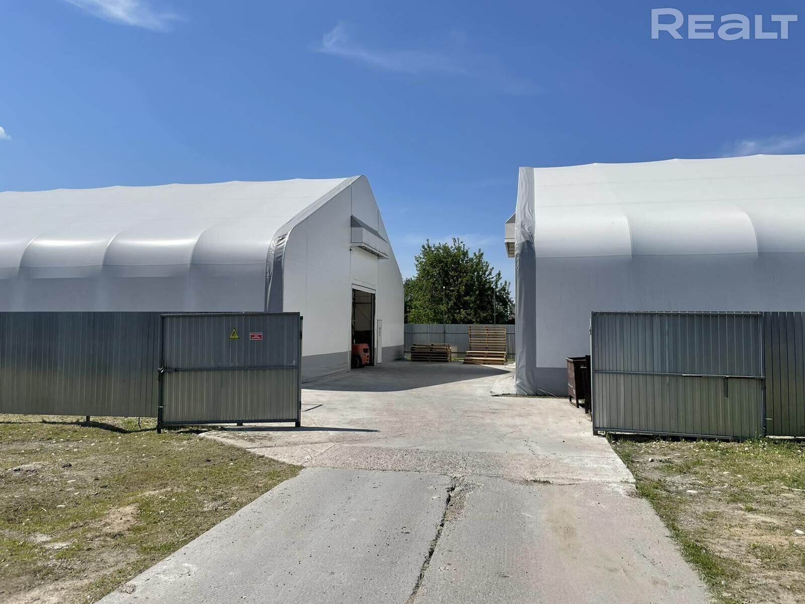 Тип объекта: СкладПлощадь общая: 432 — 864 м²Раздельных помещений: 2НДС: НДС включенНа земельном участке 0,15 Га (куплен на аукционе в 2019 г.) построено два склада 18 м х 24 м = 432 м2. Полы «наливные», оцинкованная конструкция, противопожарный тент, ворота односторонние роллетные (производство «Радовейгрупп» РБ). Территория обустроена и ограждена забором из металлопрофиля, имеет сообщение с основной территорией, видеонаблюдение (фото).432 м2 х 120 $ = 51 840 $ х 2 шт. = 103 680 $