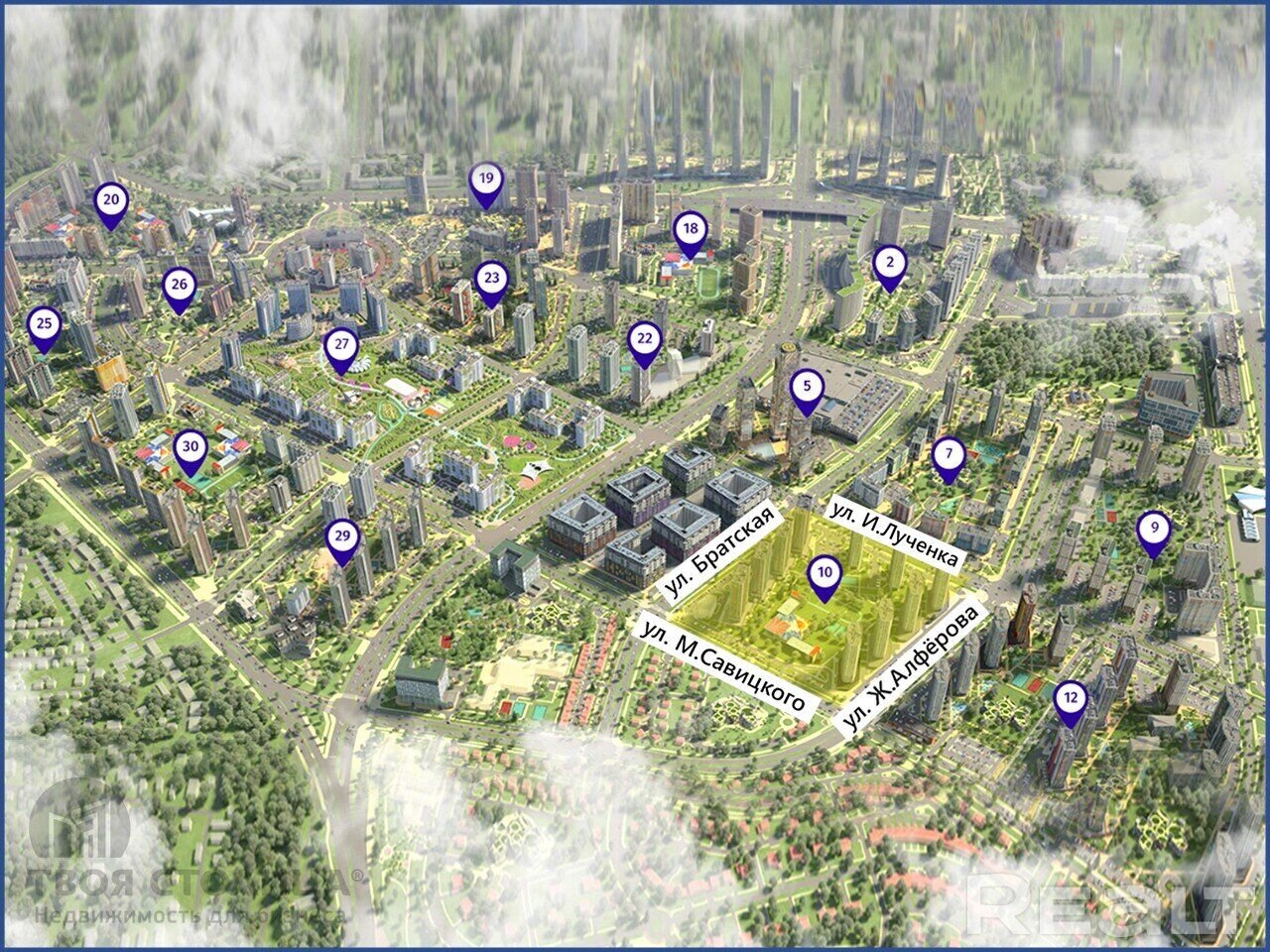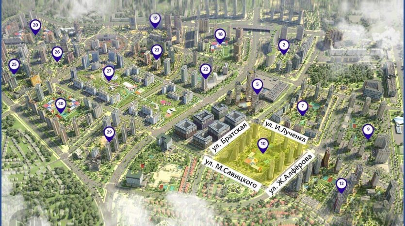 Коммерческие помещения на первом-втором этажах жилых домов в квартале «Тропические острова» комплекса Minsk World, расположен в юго-восточной части комплекса. Помещения различной площади от 28.2 кв.м до 138.67 кв.м, без отделки, разводки коммуникаций