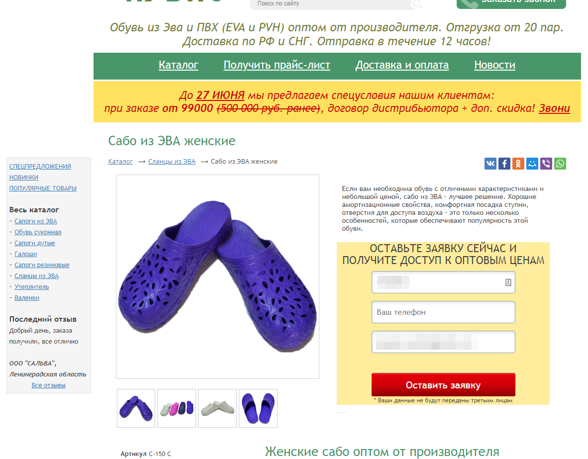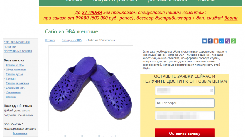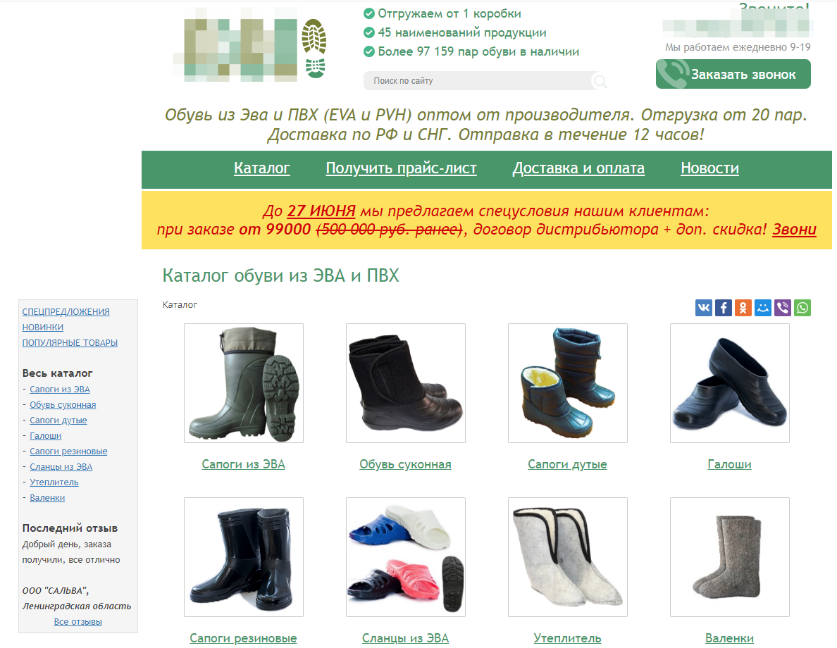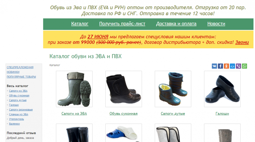 Деятельность компании заключается в привлечении клиентов (оптовых покупателей) через сеть Интернет для продажи им продукции партнеров (валенки, спецобувь, обувь из Эва и Пвх).