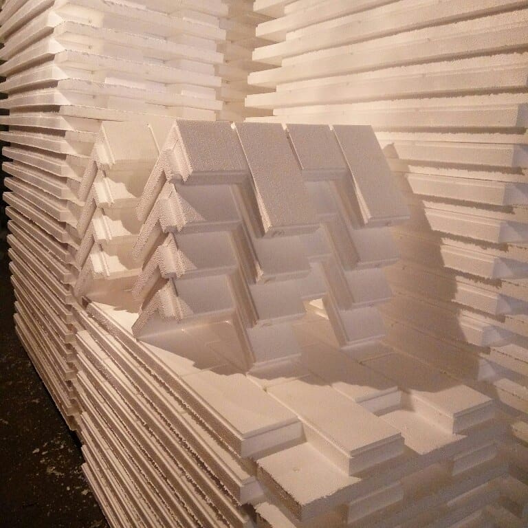 Длинна производственной линии 12 метров, высота 3 метра. Полный цикл производства, от вспенивания гранул полистирола, до формовки готовых изделий. Нет аналогов в РБ.