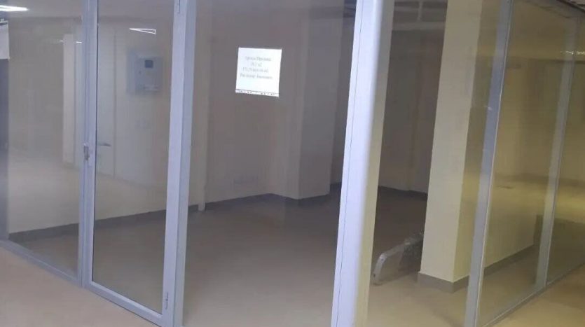 Торговое помещение на цокольном этаже. В ряду аналогичные помещения, разделенные стеклянными перегородками.