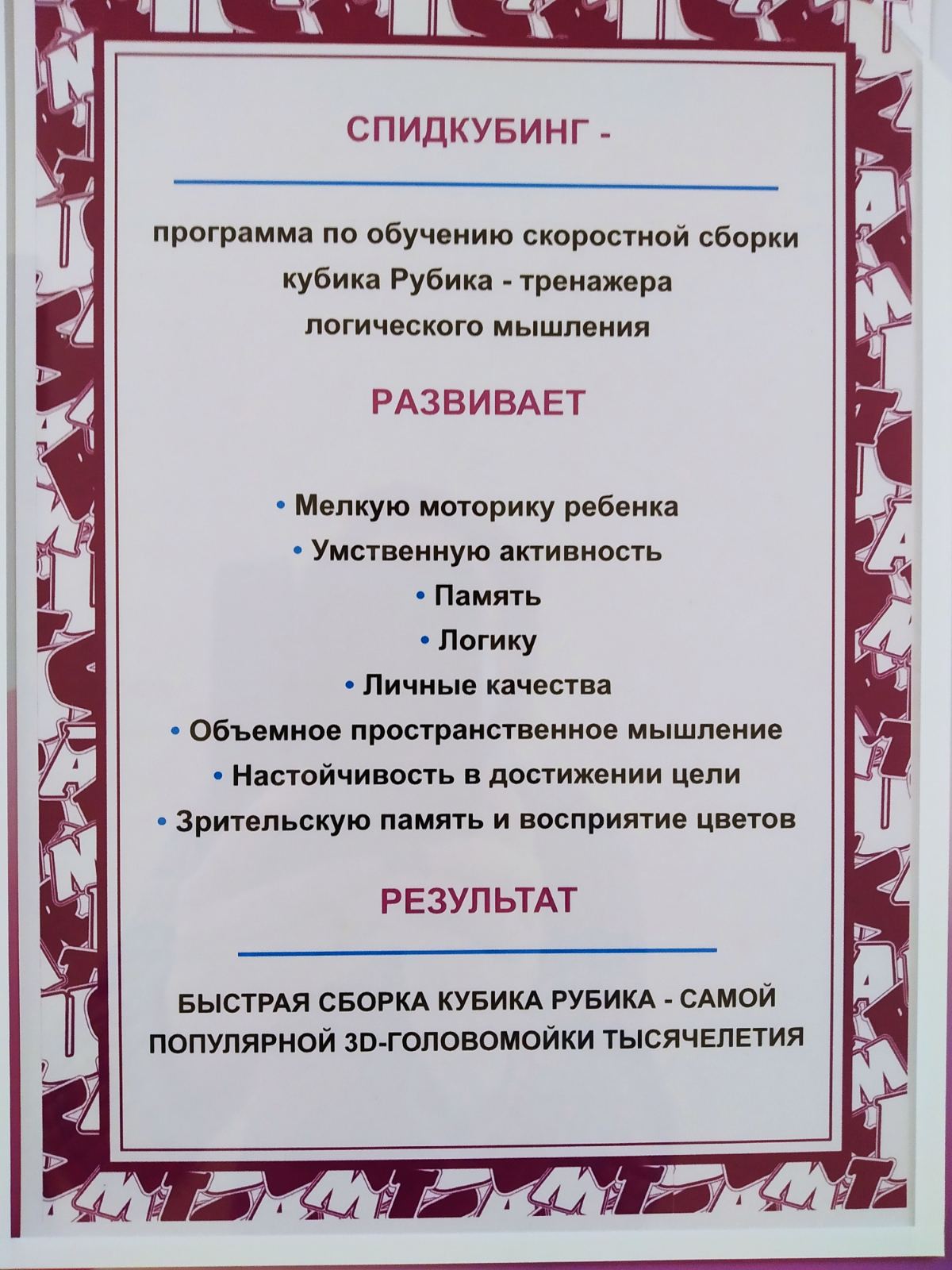 — Спидкубинг (кубик Рубика).