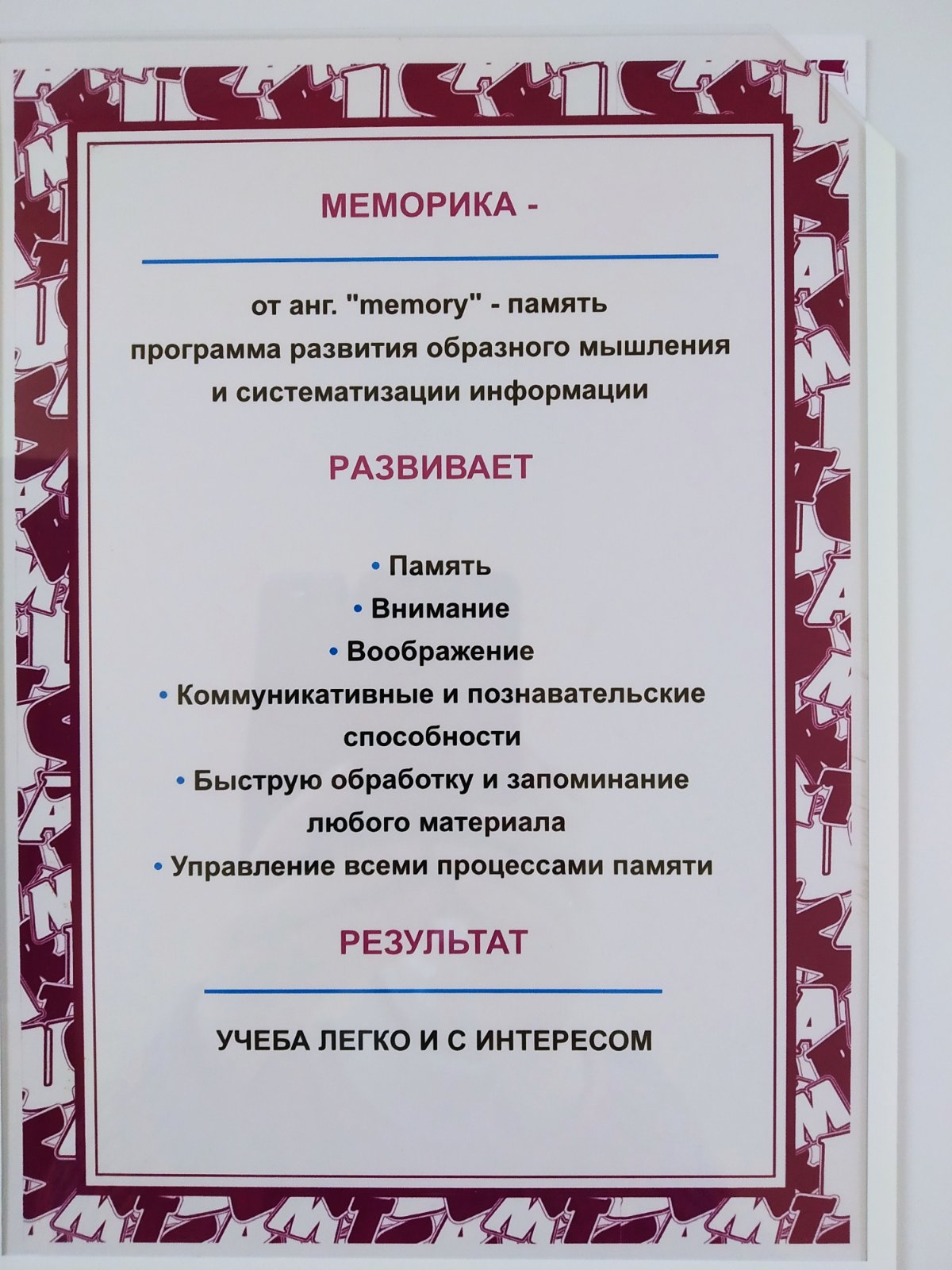 — Меморика (развитие памяти);