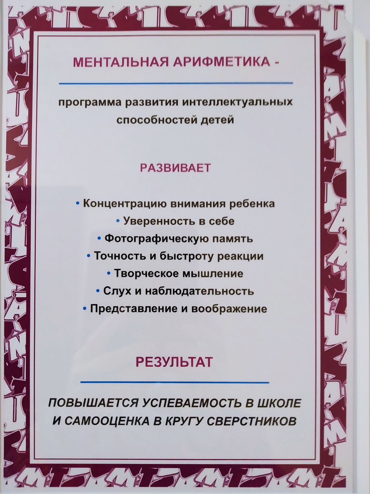 — Ментальная арифметика;