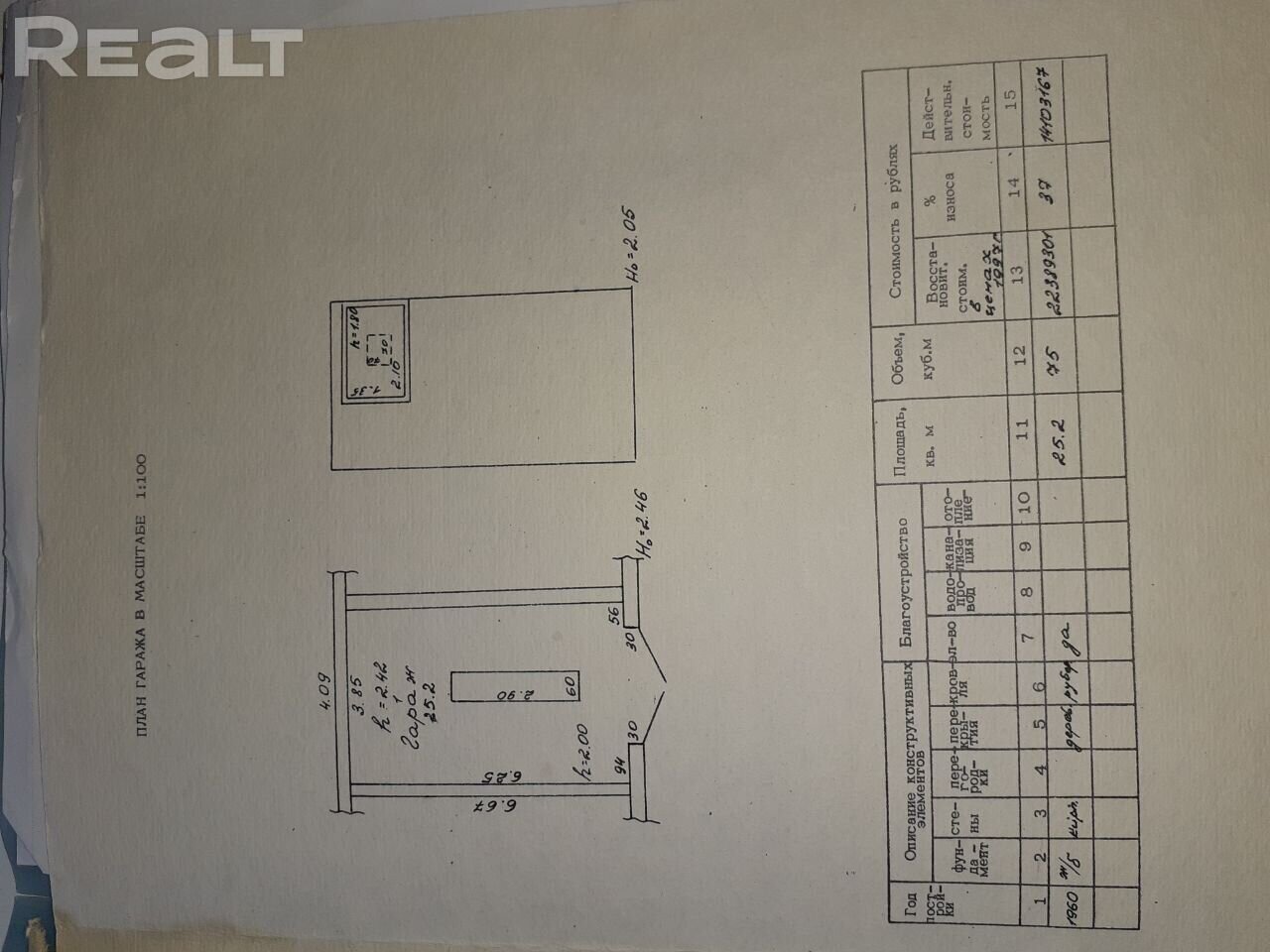 Вид объекта : гараж . Площадь : 25.2 м² . Этаж / этажность : 1 / 1 . Высота потолков : 2.42 м . Материал cтен : кирпичный . Год постройки : 1960 . Состояние здания / помещения : строительная отделка . Кол-во телефонов : нет . Наличие оборудования : есть . Естественное освещение : нет . Отопление : нет . Электроснабжение : 220В . Газоснабжение : нет . Вода : нет . Сан.узел : нет . Юридический адрес : есть . Дополнительно : охрана, видеонаблюдение . Примечания : Срочно продается гараж на ул. Ваупшасова 3, 6 ГСК-1, гараж кирпичный, металлические ворота, имеется смотровая яма, подвал, гараж оборудован стеллажами, лебедкой, и металлическими столами. Рядом с гаражом находится туалет .