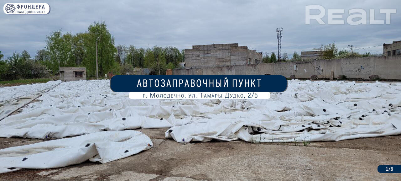 Вид объекта : нефтебаза, склад, открытая площадка . Площадь : от 8.9 до 3928.4 м² . Этаж / этажность : 1 / 1 . Высота потолков : 2.52 м . Материал cтен : кирпичный . Год постройки : 1985 . Состояние здания / помещения : удовлетворительный ремонт . Кол-во помещений : 1 . Кол-во телефонов : нет . Наличие оборудования : нет . Естественное освещение : есть . Отопление : нет . Электроснабжение : есть . Газоснабжение : нет . Вода : нет . Сан.узел : нет . Юридический адрес : есть . Дополнительно : класс B, отдельный вход, парковка, подъездные пути, через аукцион / конкурс . Примечания : Организатор торгов «Фрондера» предлагает сооружение, специализированное для автомобильного транспорта и автодорожного хозяйства, расположенное на огороженной территории «АвтотрансСтрой» с земельным участком 4.4255 га, в 500 м от автомобильной дороги Р106 (Молодечно – Сморгонь) на окраине г. Молодечно. Для эксплуатации объекта предусмотрено: площадка из бетонных плит – 3 928.4 м², одноэтажное кирпичное здание автозаправочного пункта – 8.9 м²; склад топлива в виде надземного резервуара – 15 м³ и пяти подземных – 27, 15, 14, 26, 61 м³; осветительная мачта, забор. Вблизи с сооружением располагаются производственные объекты, жилой сектор, железнодорожная станция «Фестивальный», остановки общественного транспорта и АЗС. Аукцион состоится 07.06.2022 в 12:00, по адресу: г.Минск, ул.Мележа 1, оф.1127. Окончание приема заявлений 03.06.2022 в 16:00. .