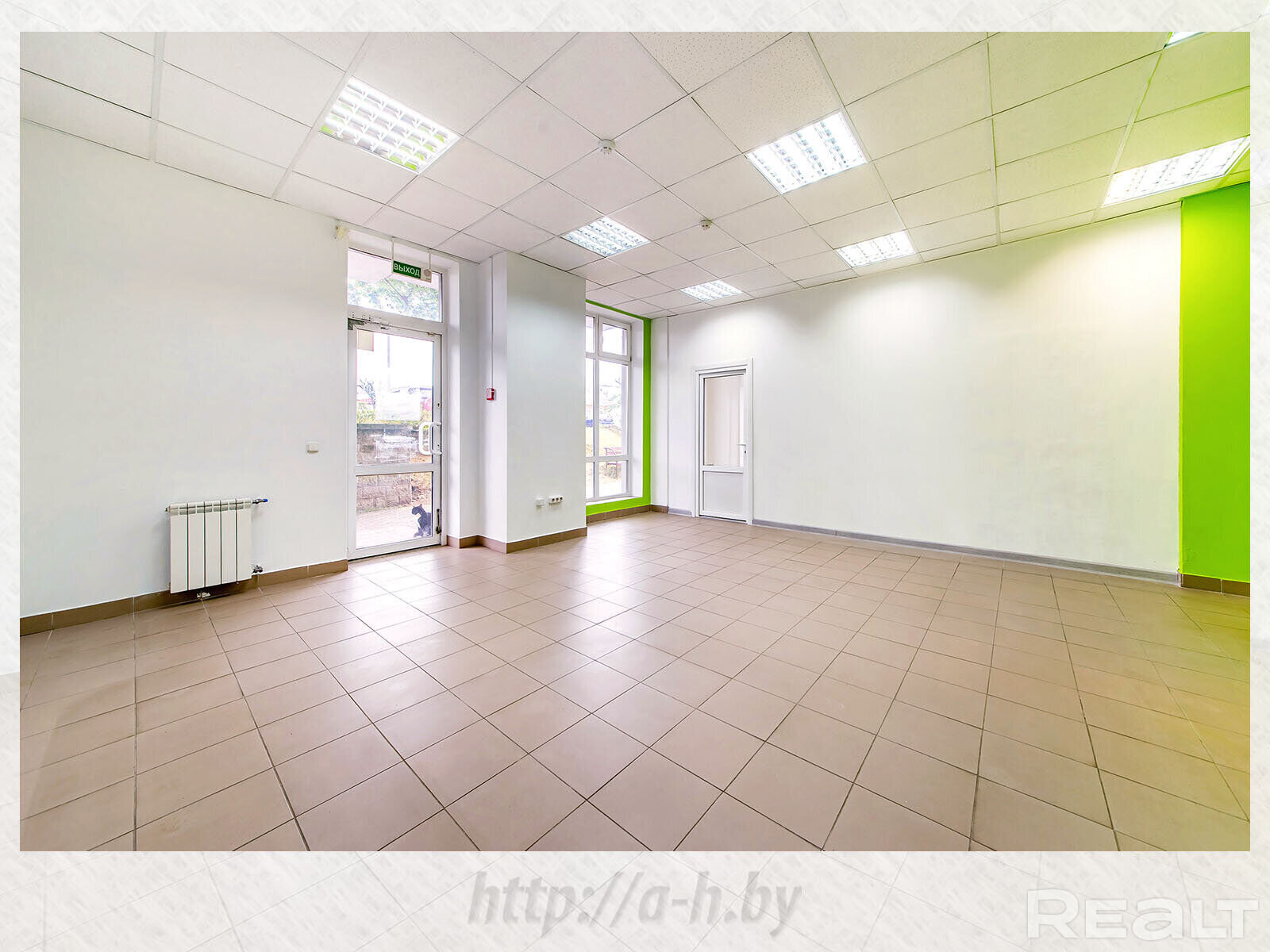 Помещение разделено на две части — 35 и 44 кв.м. Хороший ремонт, внутренние стены — из гипсокартона, большие окна обеспечивают хорошее естественное освещение. Установлены видеонаблюдение и кондиционер. Высота потолков — 3,28. Проведено оптоволокно. У входа — парковка с наличием свободных мест.